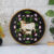 A beautiful pichwai artwork showcasing three cows in a perfect circle. The cows are adorned with intricate jewelry and stand on a wooden plate with a colorful floral border.